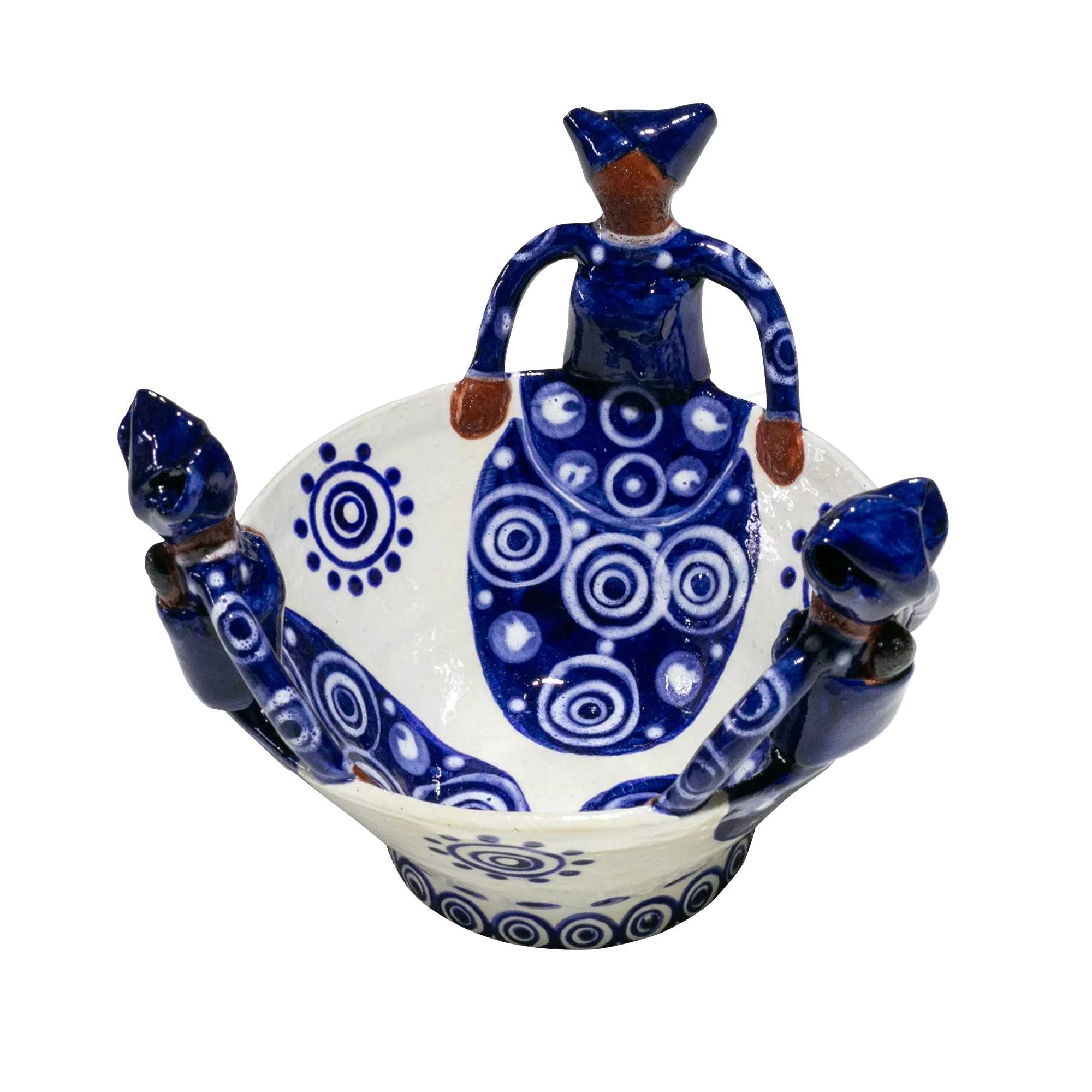 The 3Lady Ubuntu Bowl is part of the signature range of Zizamele Ceramics. Painted with a variety of glazes, the bowl's ladies hold hands in a spirit of unity while they face one another as if in joyful conversation.
