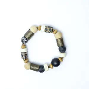 A light and compact travel jewellery bag in neutral colours with giraffe patterned polymer clay beads - JB08