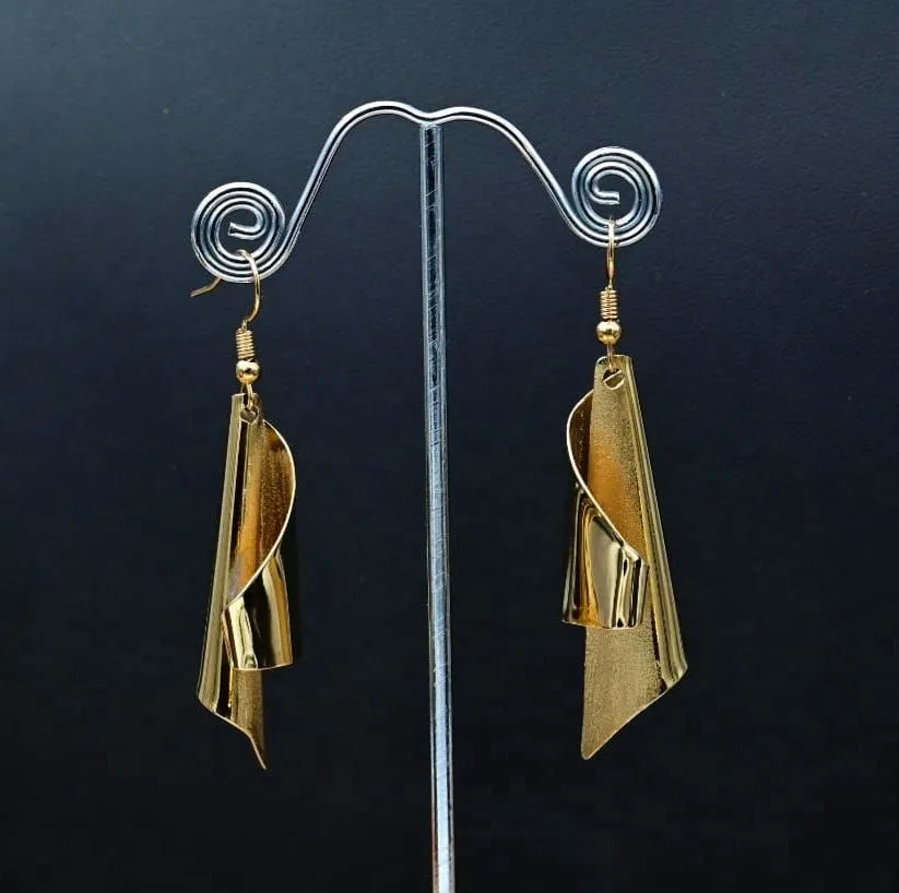 Abstract Cone 18ct Gold Plated Earrings by Jewellery Art by Simon
