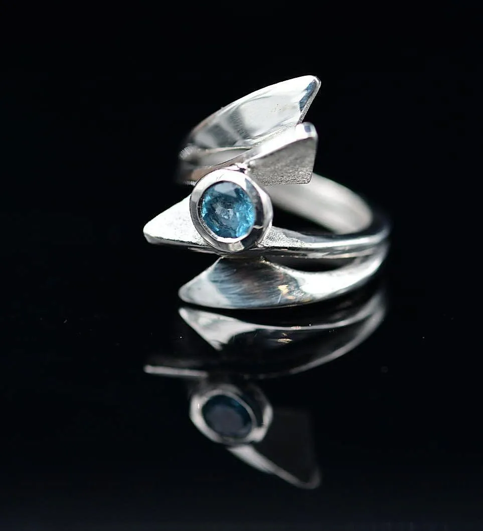 Abstract London Blue Topaz Sterling Silver Ring by Jewellery Art by Simon