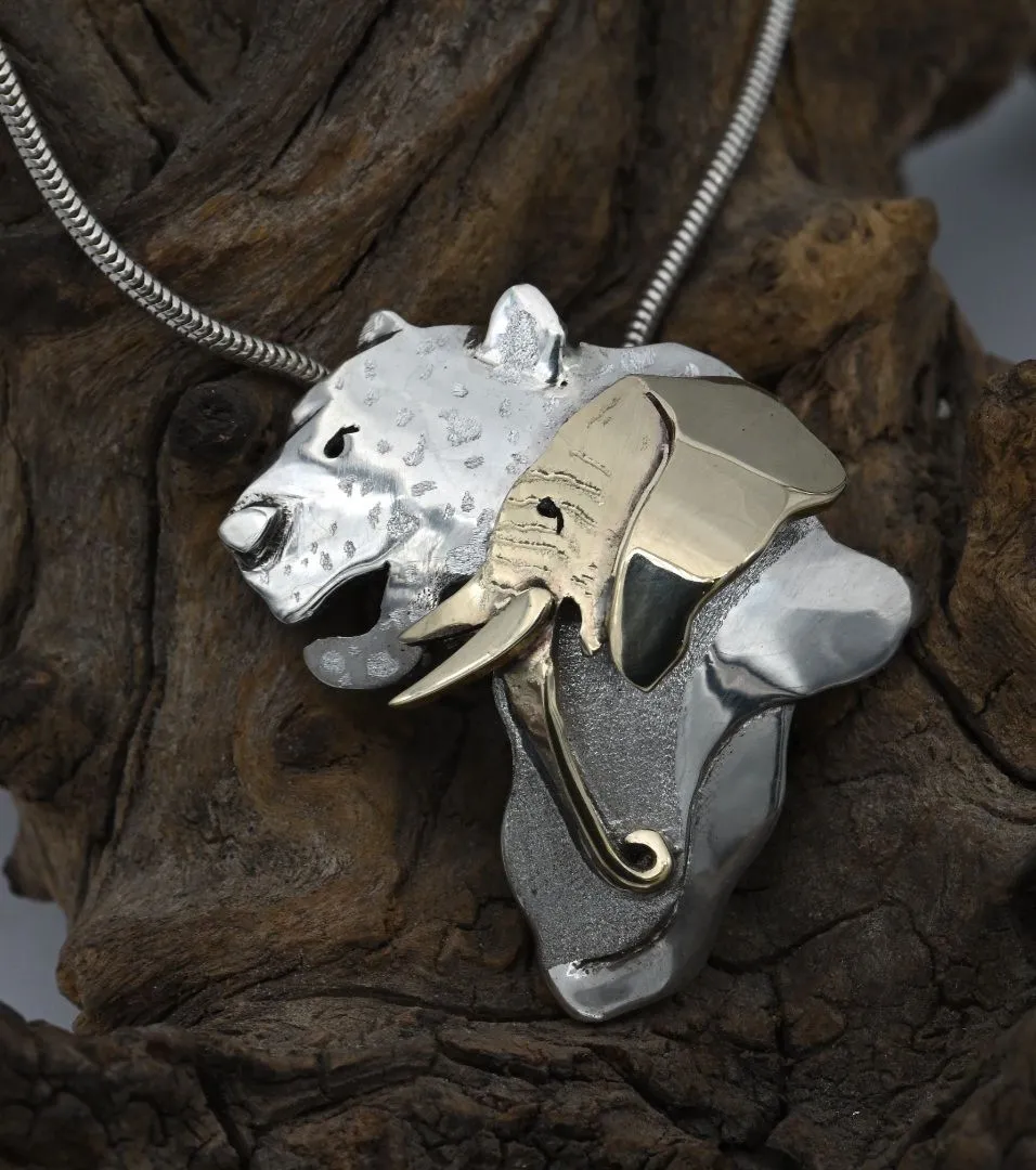 Africa/Leop/Ele(m) Silver & 9ct Gold Pendant by Jewellery Art by Simon