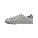 Fresh, effortless, and quietly bold, the New Earth Arctic Blue Leopard Sneaker is designed for everyday elevation. Crafted in smooth white leather, this low-profile silhouette is accented with Arctic blue leopard-print detailing for a cool, contemporary edge. The matching side panel adds subtle texture and movement, while the cushioned sole delivers all-day comfort without compromising style.