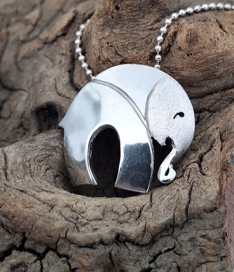 Baby Elephant Round (s) Sterling Silver Pendant by Jewellery Art by Simon