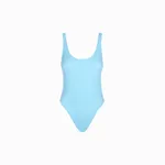 This one-piece is well-fitted and timeless and has a low-scooped neck and back with a high-cut leg. This one-piece is designed to offer some cheeky coverage.