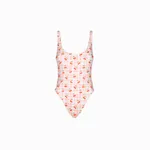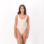 This one-piece is well-fitted and timeless and has a low-scooped neck and back with a high-cut leg. This one-piece is designed to offer some cheeky coverage.