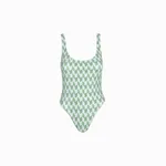 Introducing the Bae Watch One-Piece in Tessa: A fresh take on a classic houndstooth, this print was made in one of the most loved colours in fashion right now, it’s hard to go wrong with something so lux. This one-piece is well-fitted and timeless and has a low-scooped neck and back with a high-cut leg. This one-piece is designed to offer some cheeky coverage.