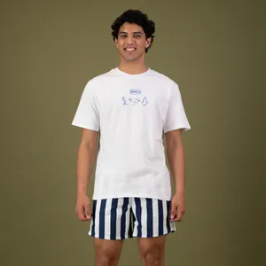 Wrap yourself in playful charm with this beautifully designed towel featuring a dapper Boulders Beach penguin sunbathing on a rock.