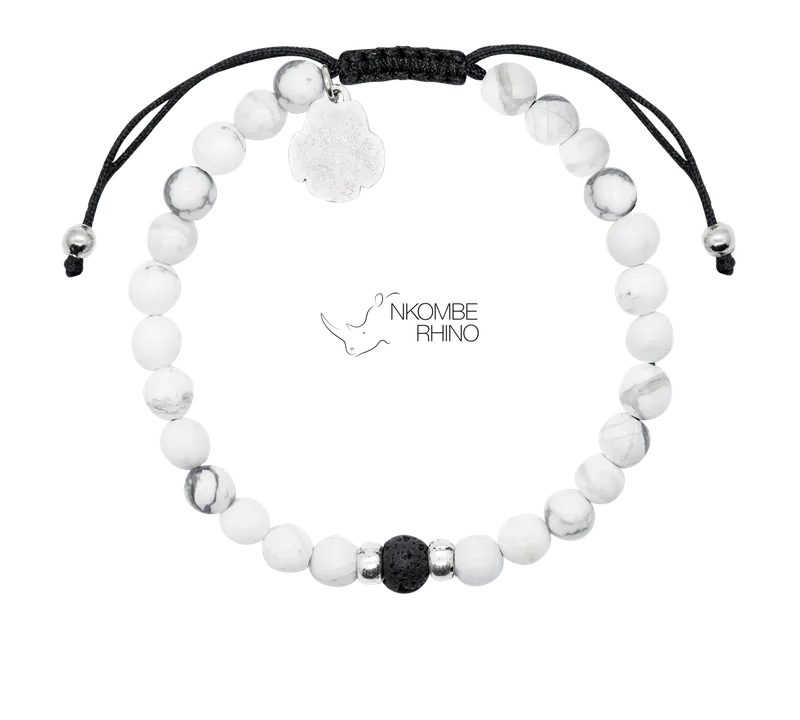 - Celebrate the gentle giant - white Howlite beads represent White Rhino and a Black Lava Bead feature represents the rarer Black species of Rhino and finished with a Rhino footprint pendant.
