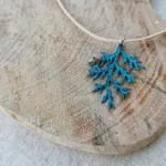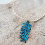 Our pendants on genuine leather chord are made from reclaimed copper that is lasercut to size and treated with colour-fast blue patina. Each shape is lovingly assembled by hand.