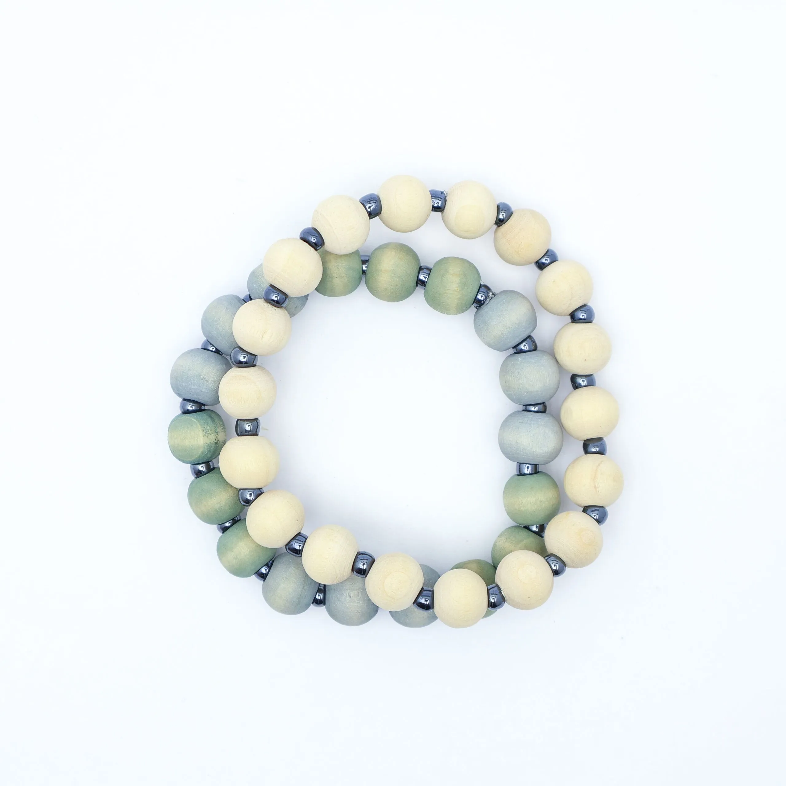 2 bracelet set. Wood with small glass beads