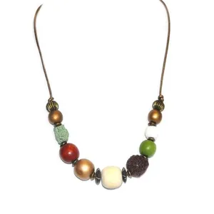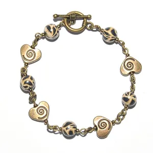 Coconut wood with ostrich eggshell and polished banded Amethsyt bracelet;