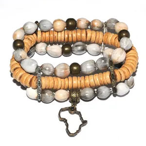 Coconut wood with ostrich eggshell and polished banded Amethsyt bracelet - BRE37B by Umtha