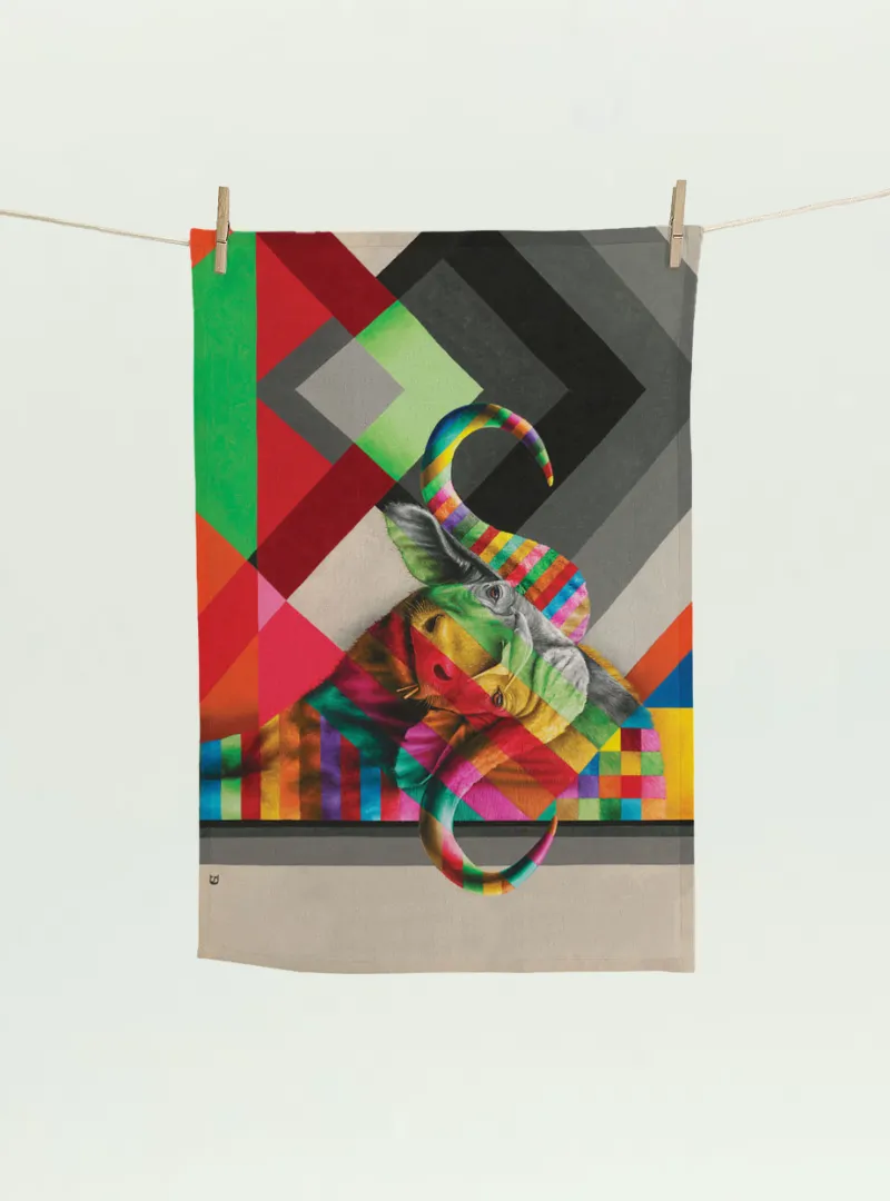 This tea towel is 100% cotton and has a hang tag in one corner.