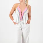 Playful and free-spirited, the Callie Top is a backless halter style
