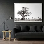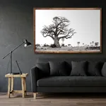 Black framed canvas: Premium canvas stretched and surrounded by a black shadow box frame.
