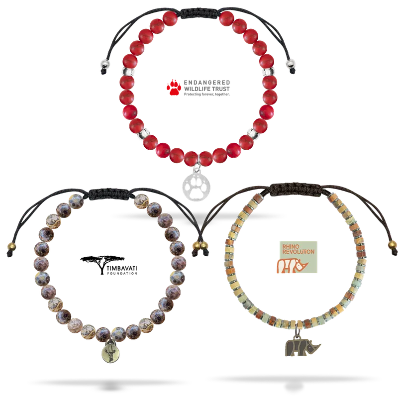 Make a difference for Africa's wildlife with three powerful charity bracelets in one meaningful collection. Each bracelet directly supports vital conservation work on the ground.