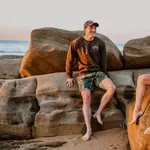 Khaki with Salty C ocean inspired blue and green round logo on left hand chest (plain back)