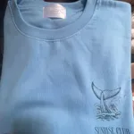 -Turquoise with Sunrise Club logo on left hand chest (plain back) *please note our new turquoise fabric is brighter than the original sky turquoise we had in stock*