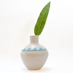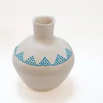 This coil pot is made from white stoneware clay which gives it a contemporary twist. A simple design of dots gives it a minimalist touch.