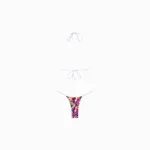 The bottoms have minimal bottom coverage. The white side straps are adjustable so you can style the straps higher or lower.