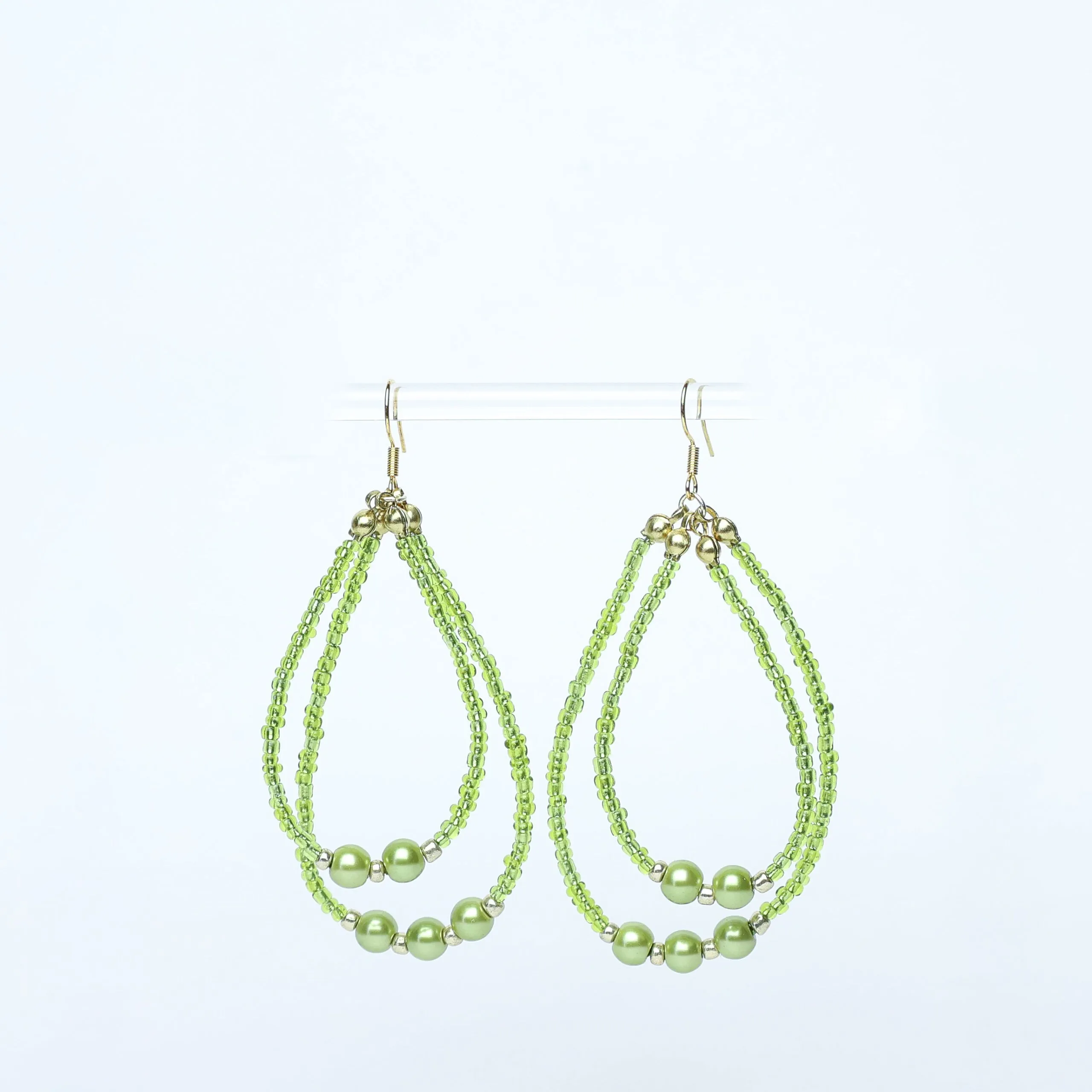 Double Hooped Earrings with Green Seed Beads and Pearls