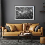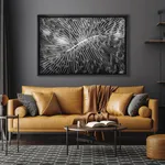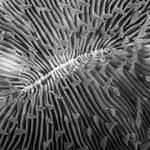 This black and white photograph captures the beauty and intricate details of a coral reef. The contrasting tones create a striking image that emphasizes the delicate and diverse nature of the underwater ecosystem.