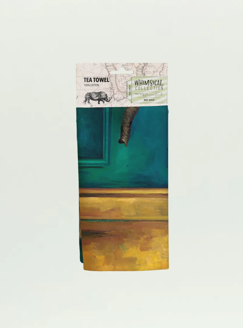 This tea towel is 100% cotton and has a hang tag in one corner.