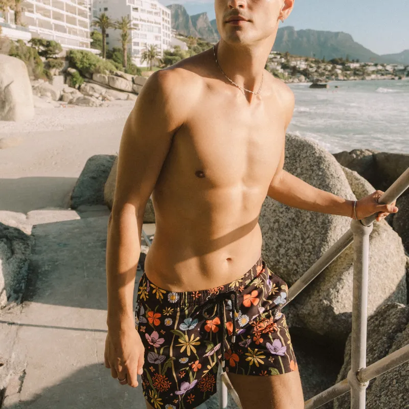 Mid-length Swim Shorts | English Garden / Black by Granadilla