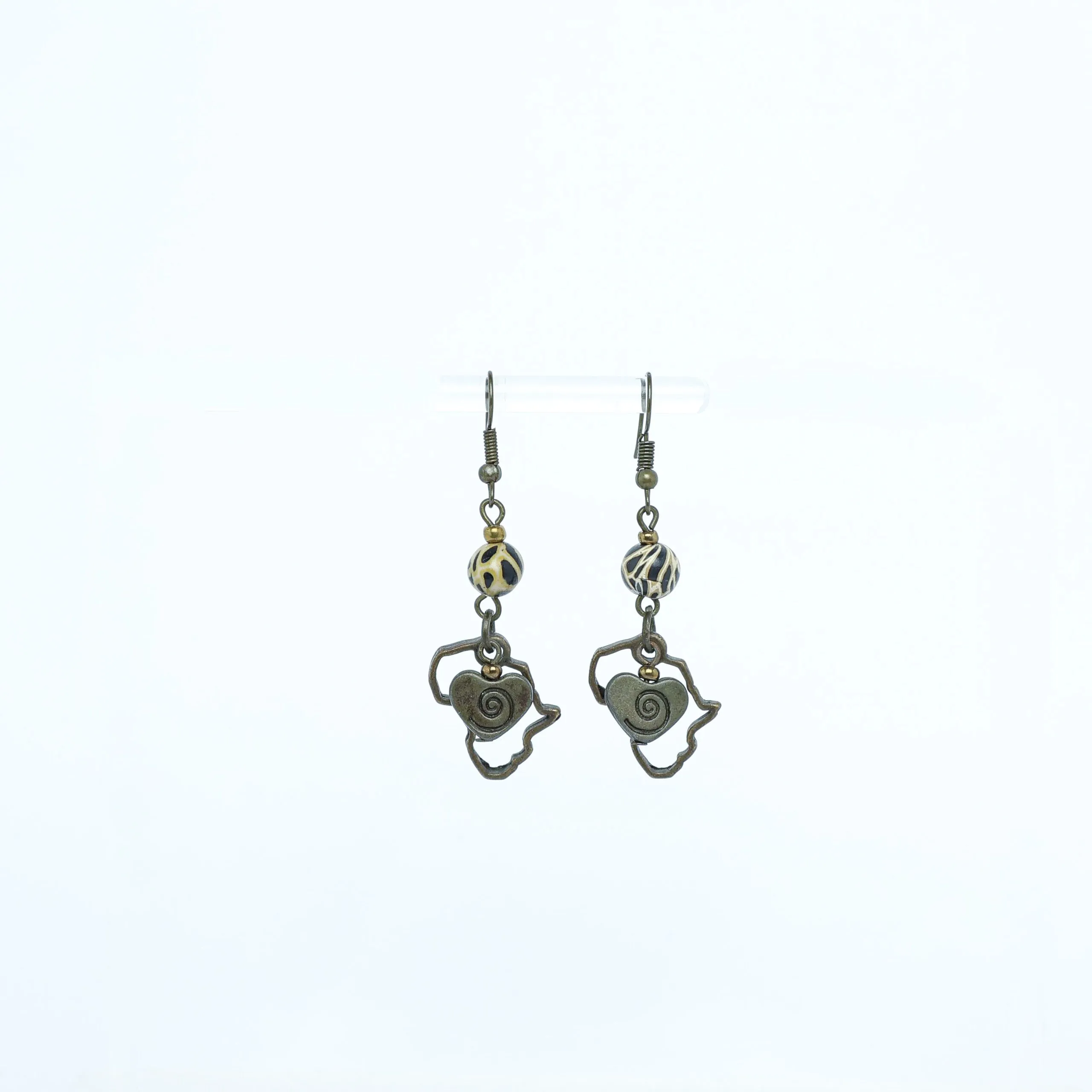 Animal Skin Polymer Clay and Antique Brass Hearts in Africa Earrings