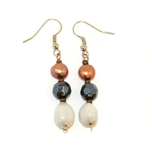Zulu seeds earrings with freshwater pearls and facetted glass.