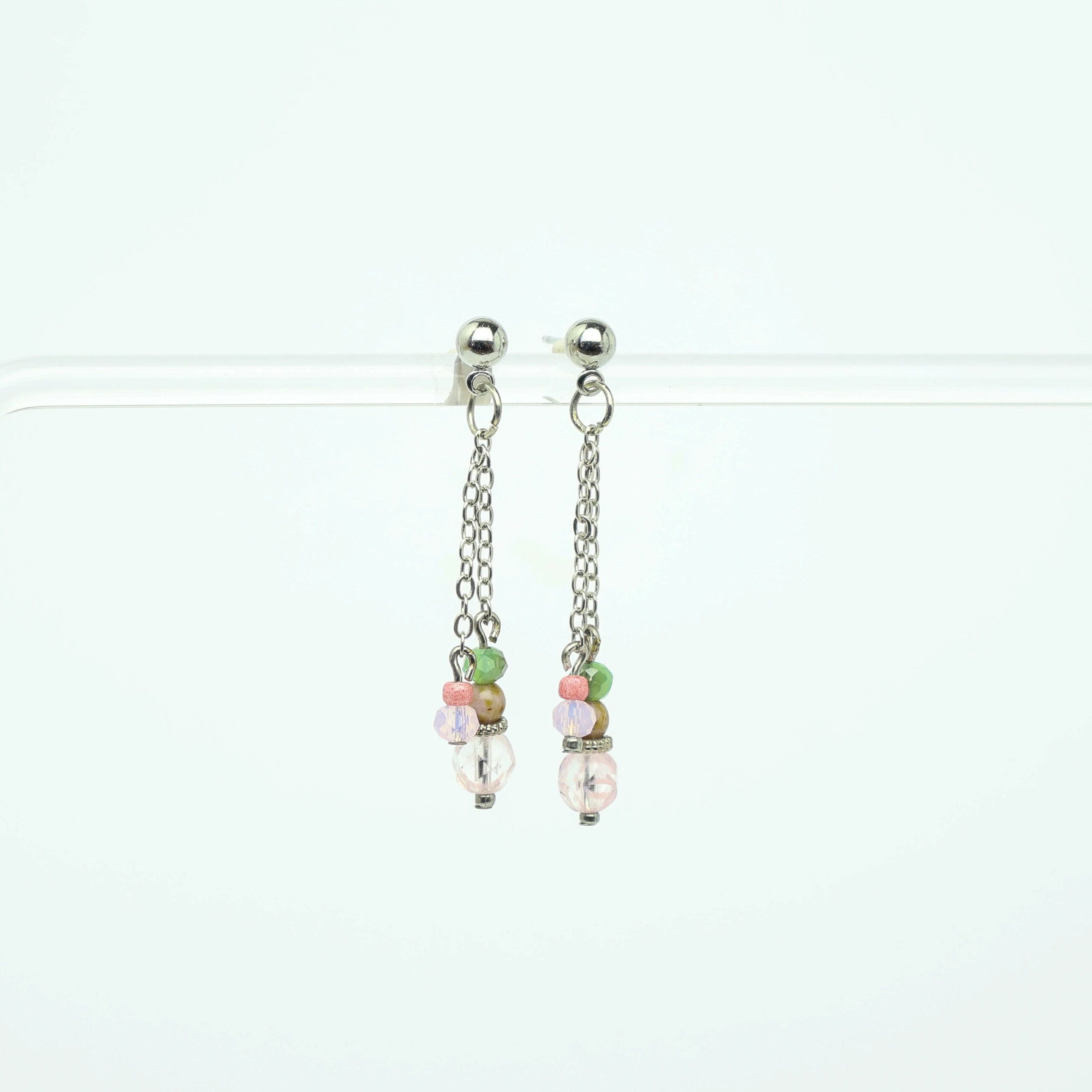 Diamond Shaped Earrings Threaded with Rust And Green Ribbon
