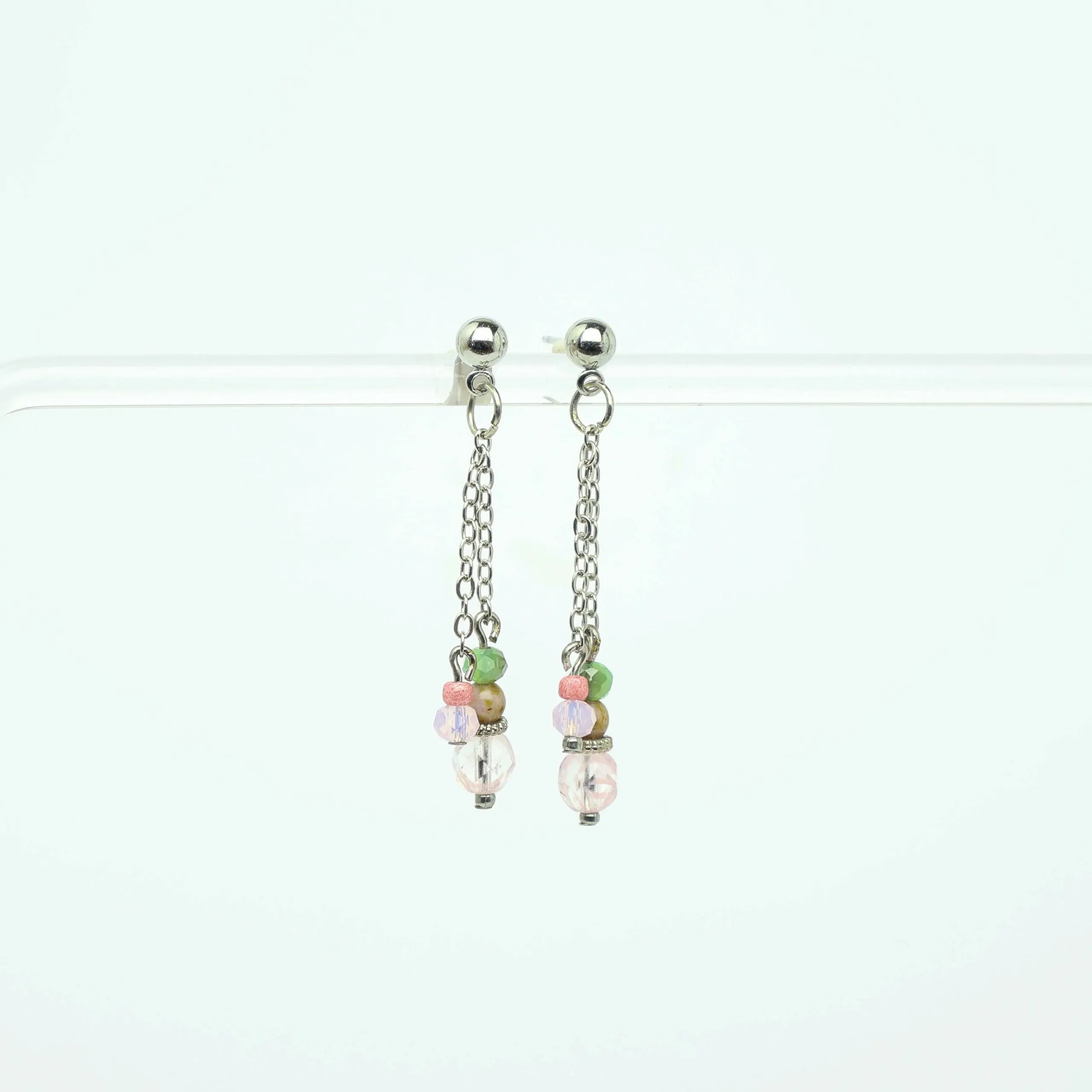 Delicate bead chain earrings, with facetted Czech and other glass.