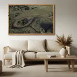 Black framed canvas: Premium canvas stretched and surrounded by a black shadow box frame.
