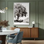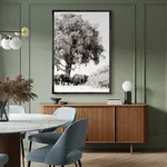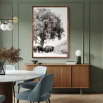 Black framed canvas: Premium canvas stretched and surrounded by a black shadow box frame.