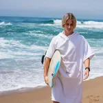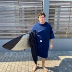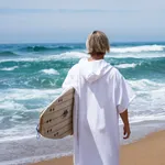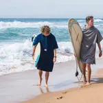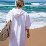 This hooded towel changing poncho is perfect for drying-off, beach changing, post-shower and much more. Its warm, fluffy and super absorbent. The ponchos have pockets, 3/4 sleeves, a hood and plenty of space to slip in and out of a wetsuit or swimming costume. LARGE: About 105cm from the shoulder to the bottom of the poncho. Size from neck down to bottom and width of front rectangle 115cm x 70cm.  XL: About 115cm from the shoulder. Size-125cm x 80cm.