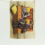 This tea towel is 100% cotton and has a hang tag in one corner.