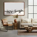 Raw wood types: Premium canvas stretched and framed with an outer wooden frame in the style selected.