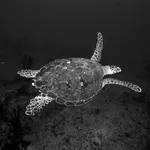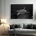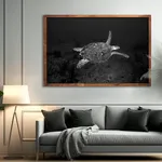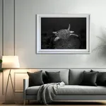 This stunning black and white photograph features a single turtle, captured by a photographer with a deep respect for conservation and the natural world. The unique perspective and striking image evoke a sense of wonder and appreciation for the beauty of the turtle and the world it inhabits. Through this piece, the photographer reminds us of the importance of protecting our natural environment and the incredible creatures that call it home.