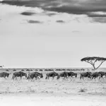 The Great Wildebeest Migration, the world's largest migration of wildlife, is a popular event to witness in Kenya's Maasai Mara. The numbers are astonishing: over 1.2 million wildebeest and 300,000 zebra along with topi and other gazelle move in a constant cycle through the Serengeti-Mara ecosystem in search of nutritious grass and water.