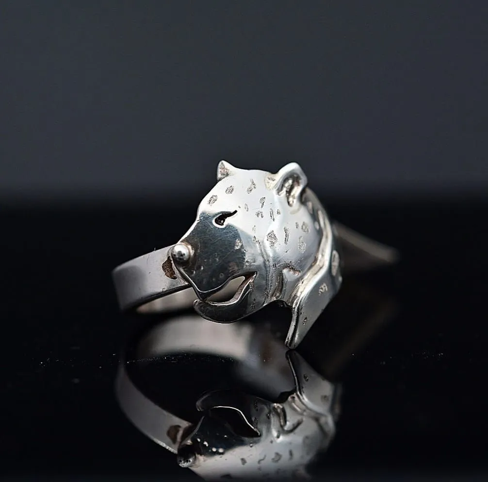 Leopard Head Ring Sterling Silver by Jewellery Art by Simon
