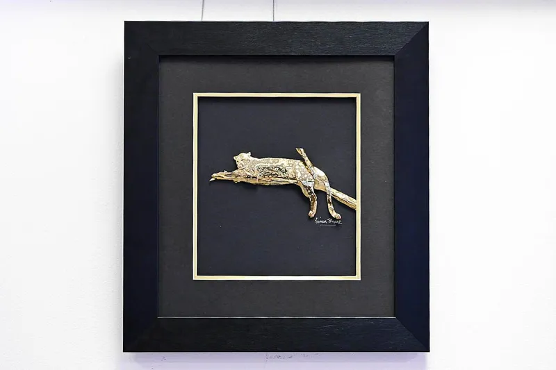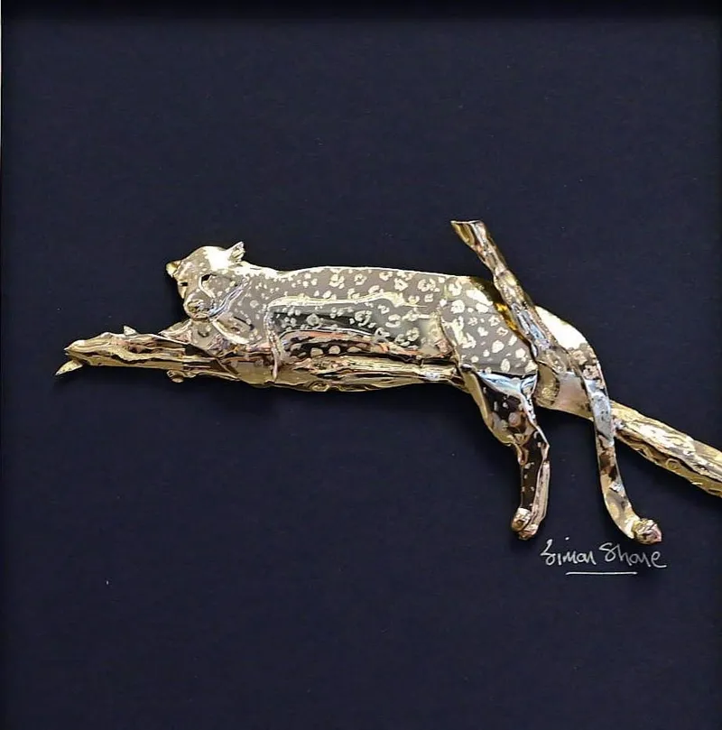 Leopard in a tree Crafted in Brass and Plated in 18ct gold. by Jewellery Art by Simon