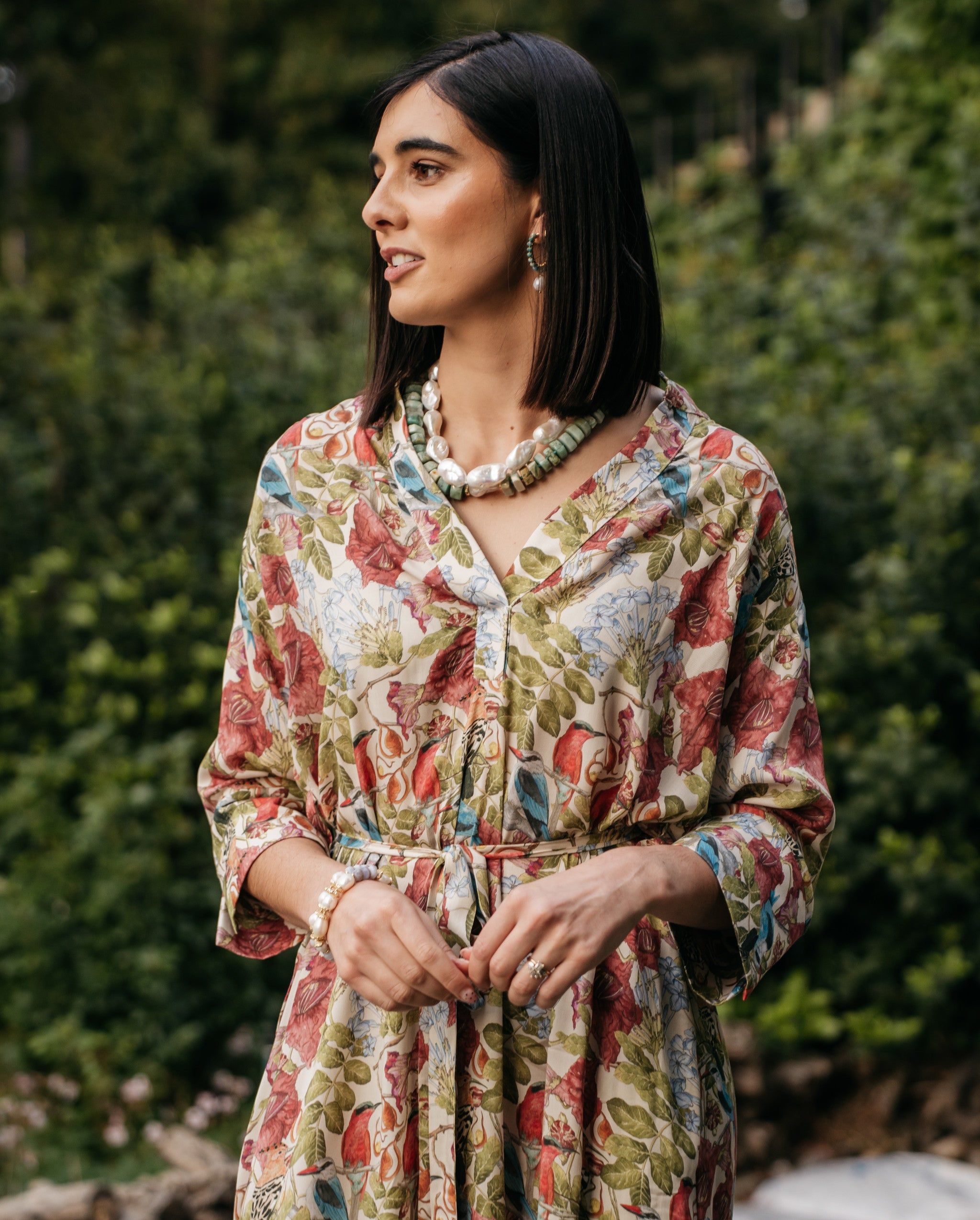 Step into effortless elegance with the Africa Adorned Dress Collection, where art, design and nature come together in wearable form. Each dress features original hand-painted watercolour artworks of South Africa’s indigenous Agapanthus & Saliva flowers, translated into bespoke textile prints exclusive to CoralBloom.