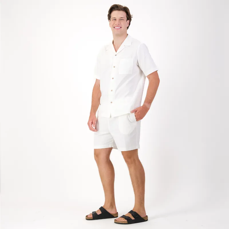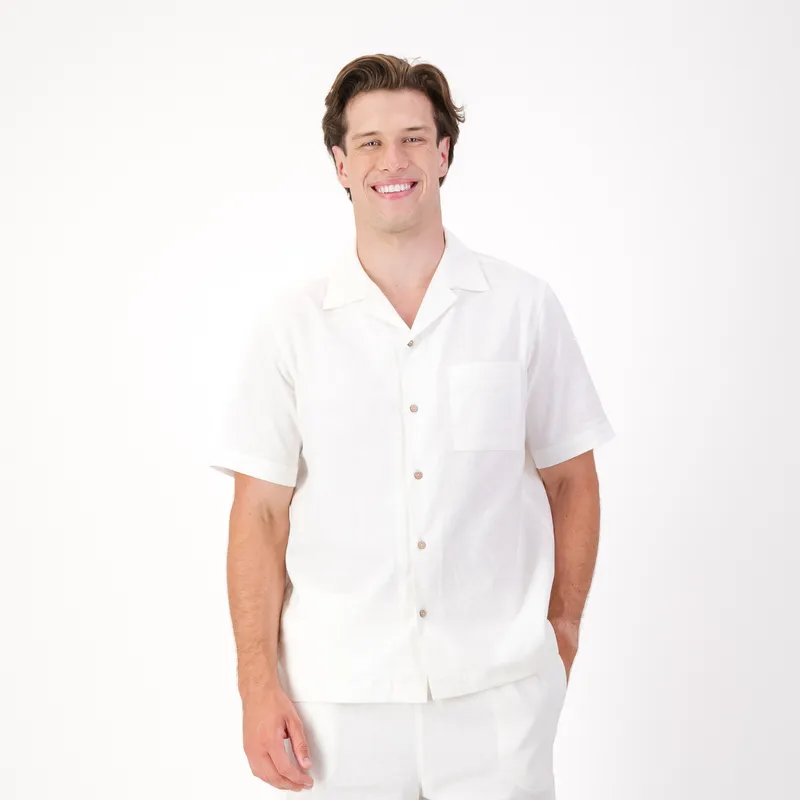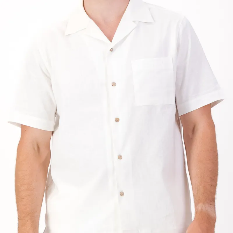 Mens Short Sleeve Revere Collar Shirt | Plain / White by Granadilla