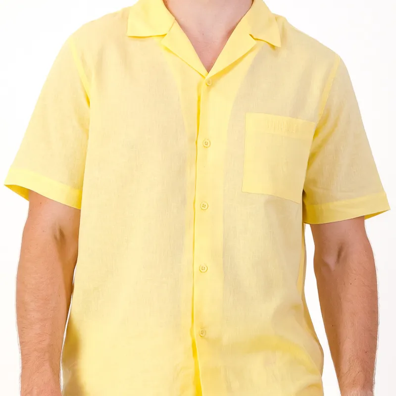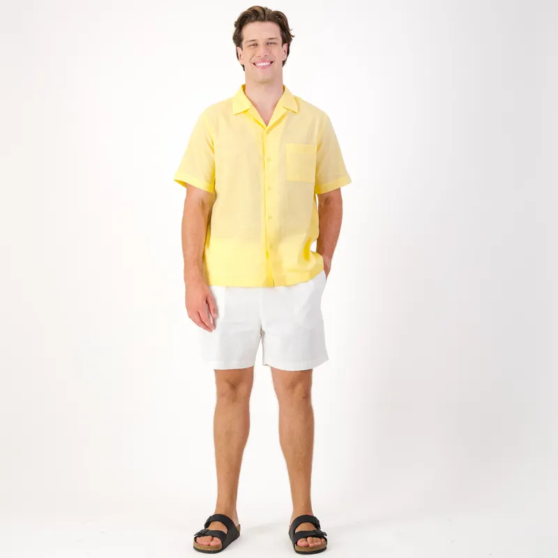 Mens Short Sleeve Revere Collar Shirt | Plain / Yellow by Granadilla