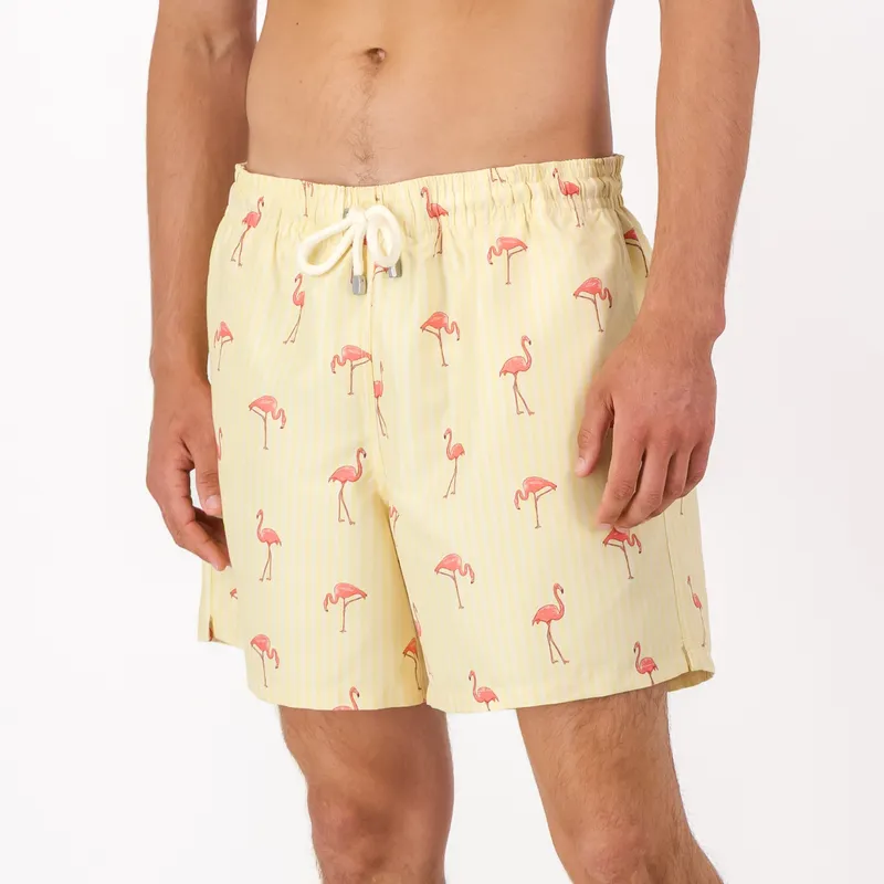 Mid-length Swim Shorts | Flamingo / Yellow by Granadilla