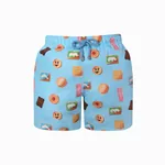 Sprinkled with classic biscuits on a playful light blue base, these shorts are a nostalgic nod to teatime treats and tuck shop days.
