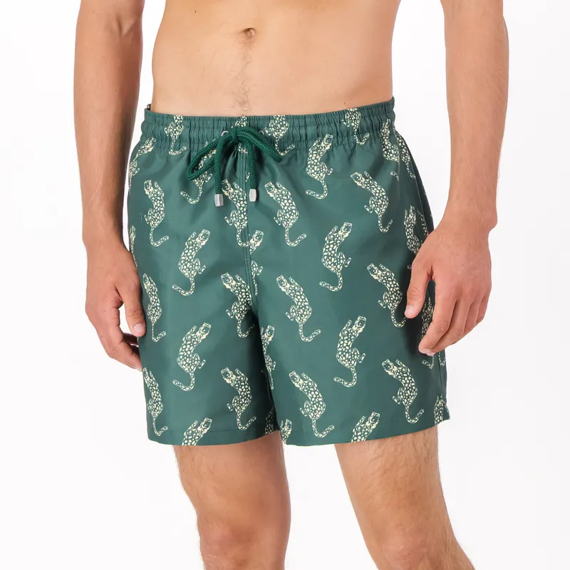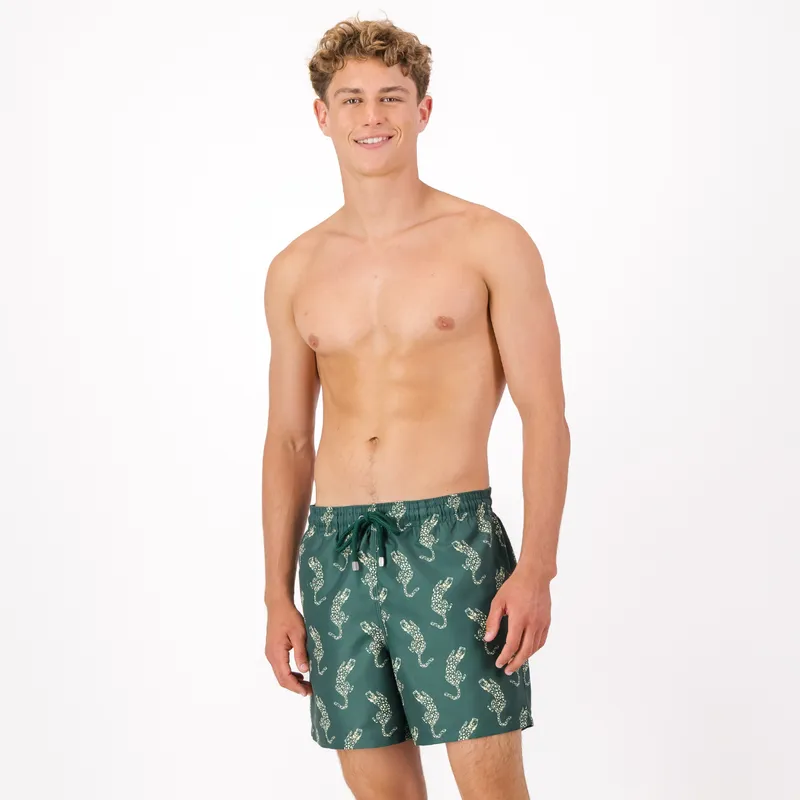 Mid-length Swim Shorts | Leopard / Emerald by Granadilla