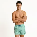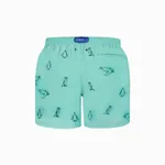 Mid-length Swim Shorts | Penguins Embroidery / Mint by Granadilla