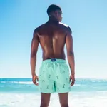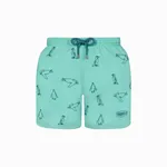Mid-length Swim Shorts | Penguins Embroidery / Mint by Granadilla