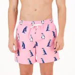Mid-length Swim Shorts | Penguins / Pink by Granadilla